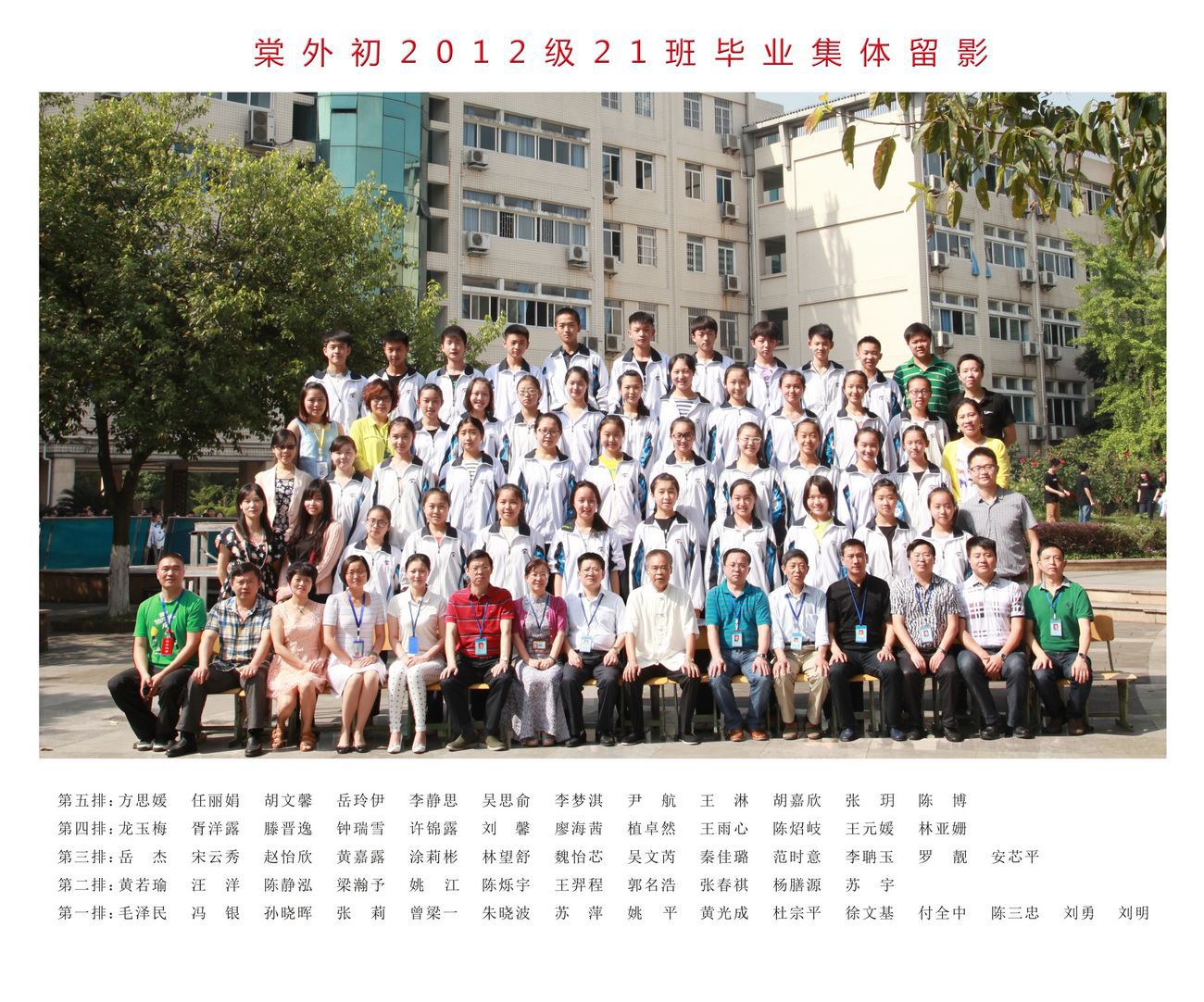 成都棠湖外国语学校初中2015届21班毕业合影名单