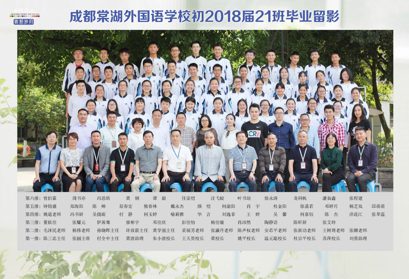 成都棠湖外国语学校初中2018届21班毕业合影名单