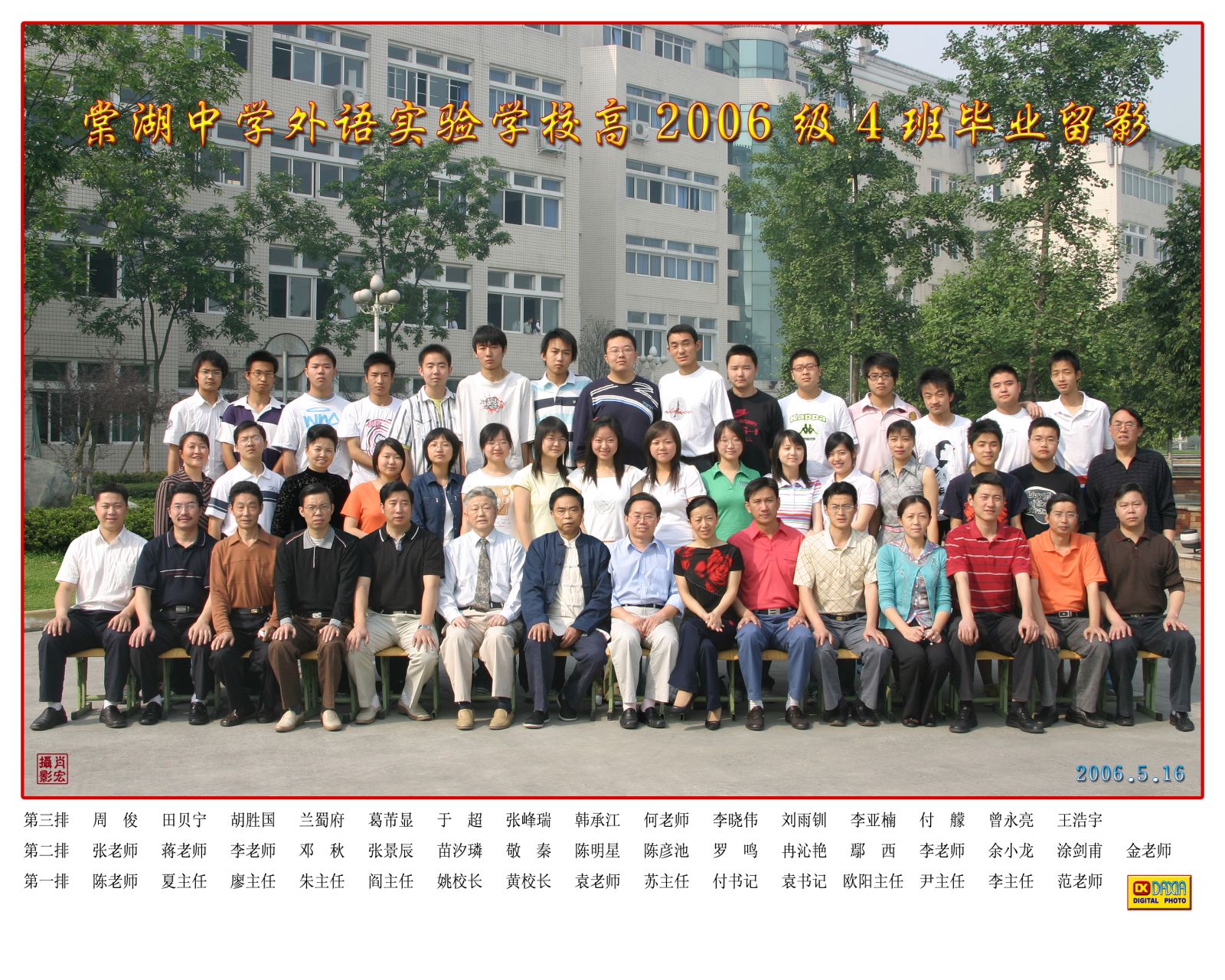 成都棠湖外国语学校高中2006届04班毕业合影名单