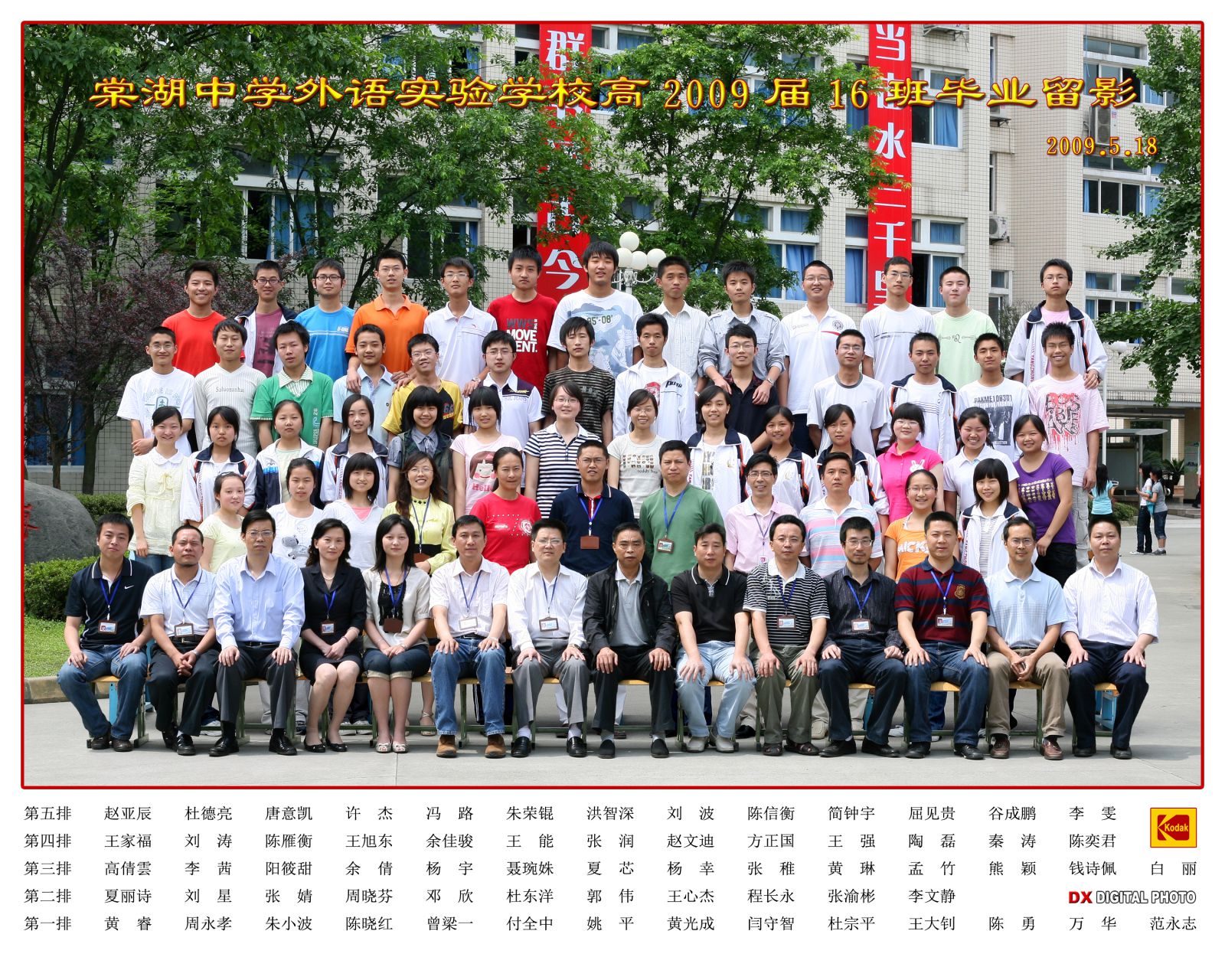 成都棠湖外国语学校高中2009届16班毕业合影名单