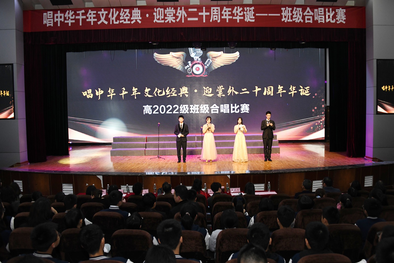 为更好地推进素质教育,进一步丰富校园文化生活,3月22日晚,高2022级全体师生在棠外音乐厅隆重举行了以“唱中华千年文化经典•迎棠外二十周年华诞”为主题的班级合唱比赛。