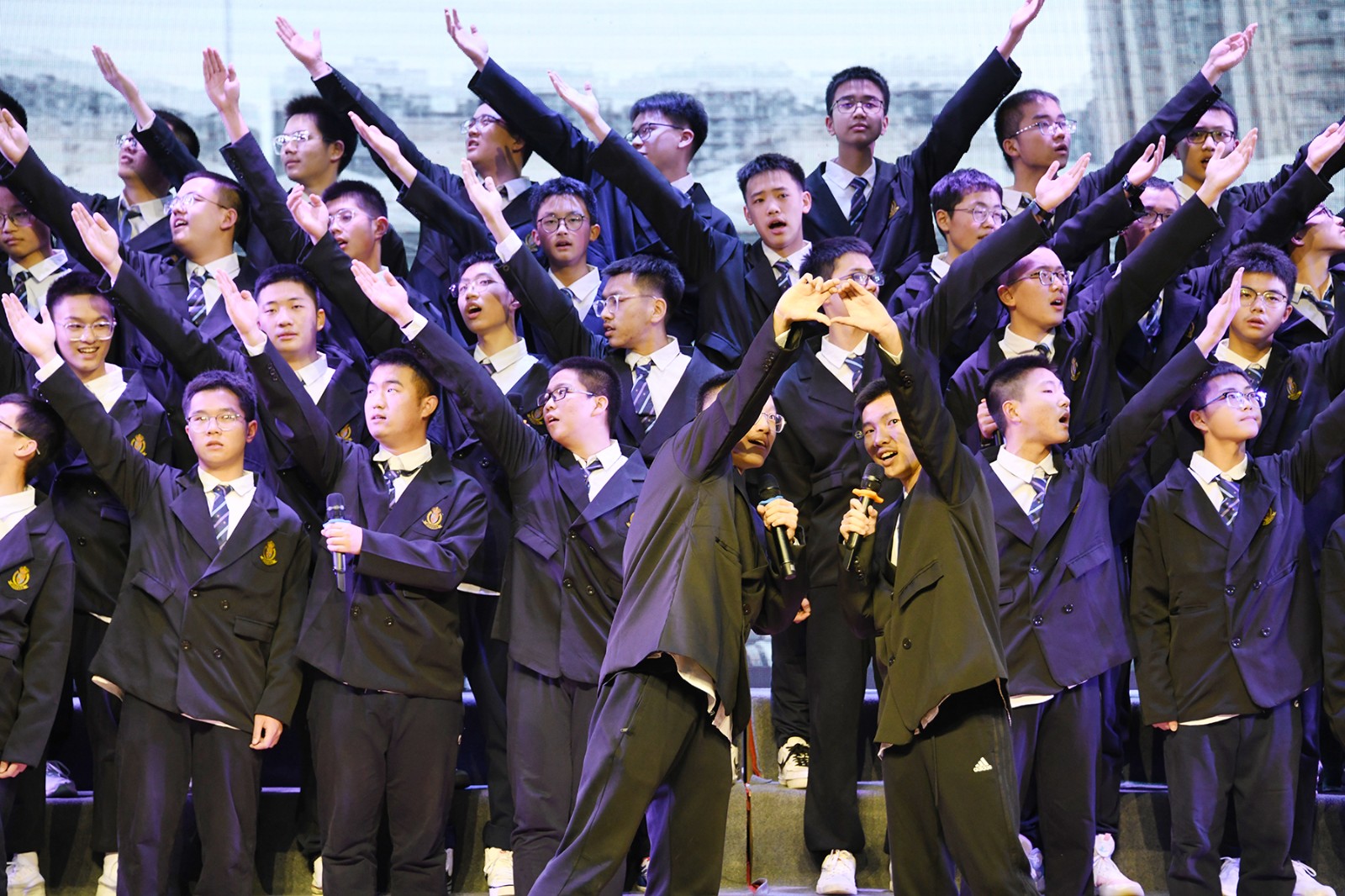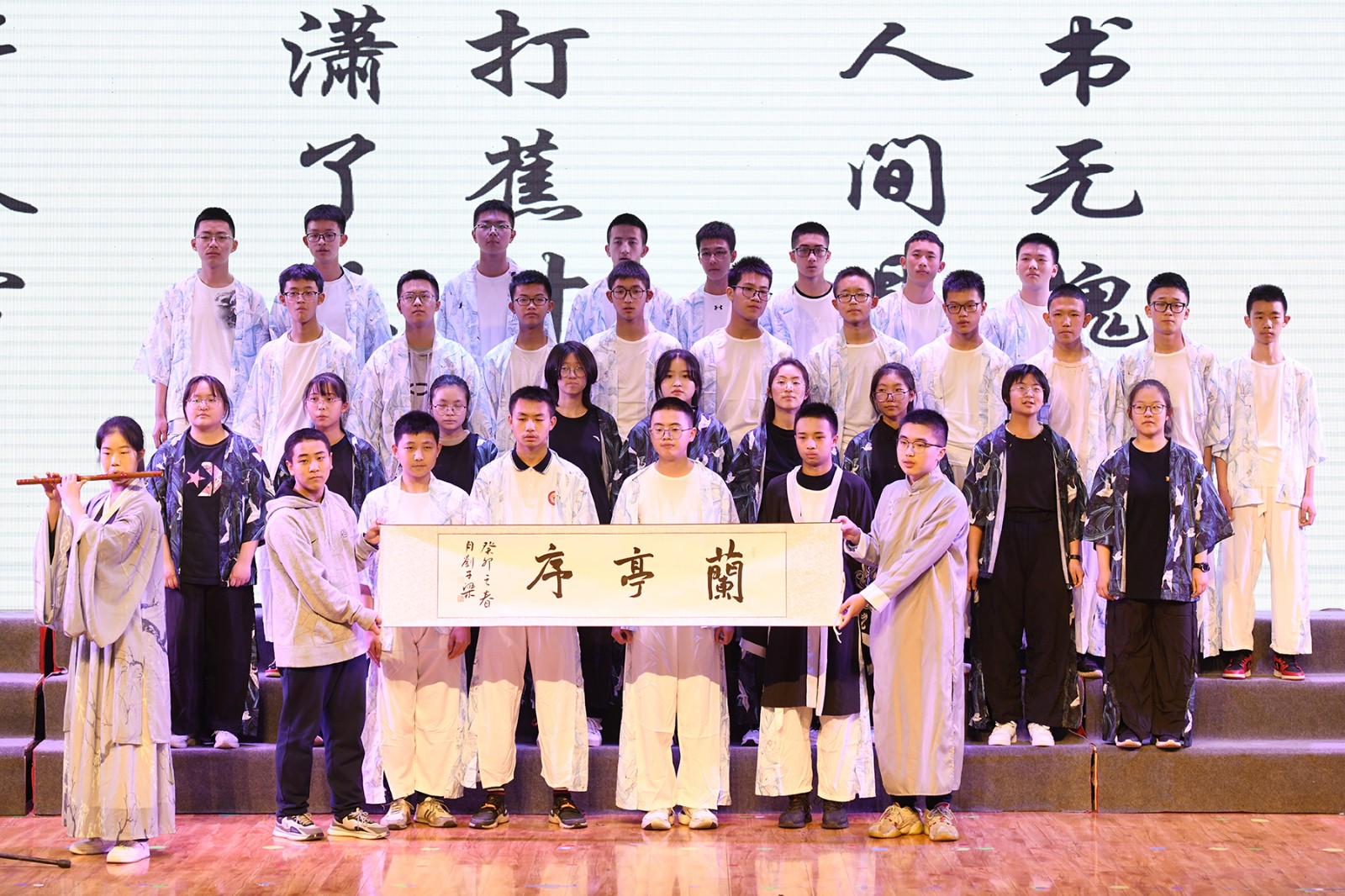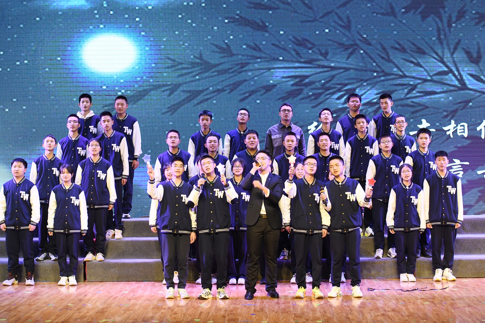 华彩出群英,诗韵有国风!这里绵延着古风,荡涤着儒雅书香,《兰亭序》《杨花落尽子规啼》《木兰诗》《青花瓷》余韵悠远;这里依偎着现代,寻觅着精神依托,《追光者》《夜空中最亮的星》《一路生花》《沸腾的心》情深意长;更有《精忠报国》者,唱出了同学们的气势、唱出了同学们激情、唱出了同学们勇往直前的心!