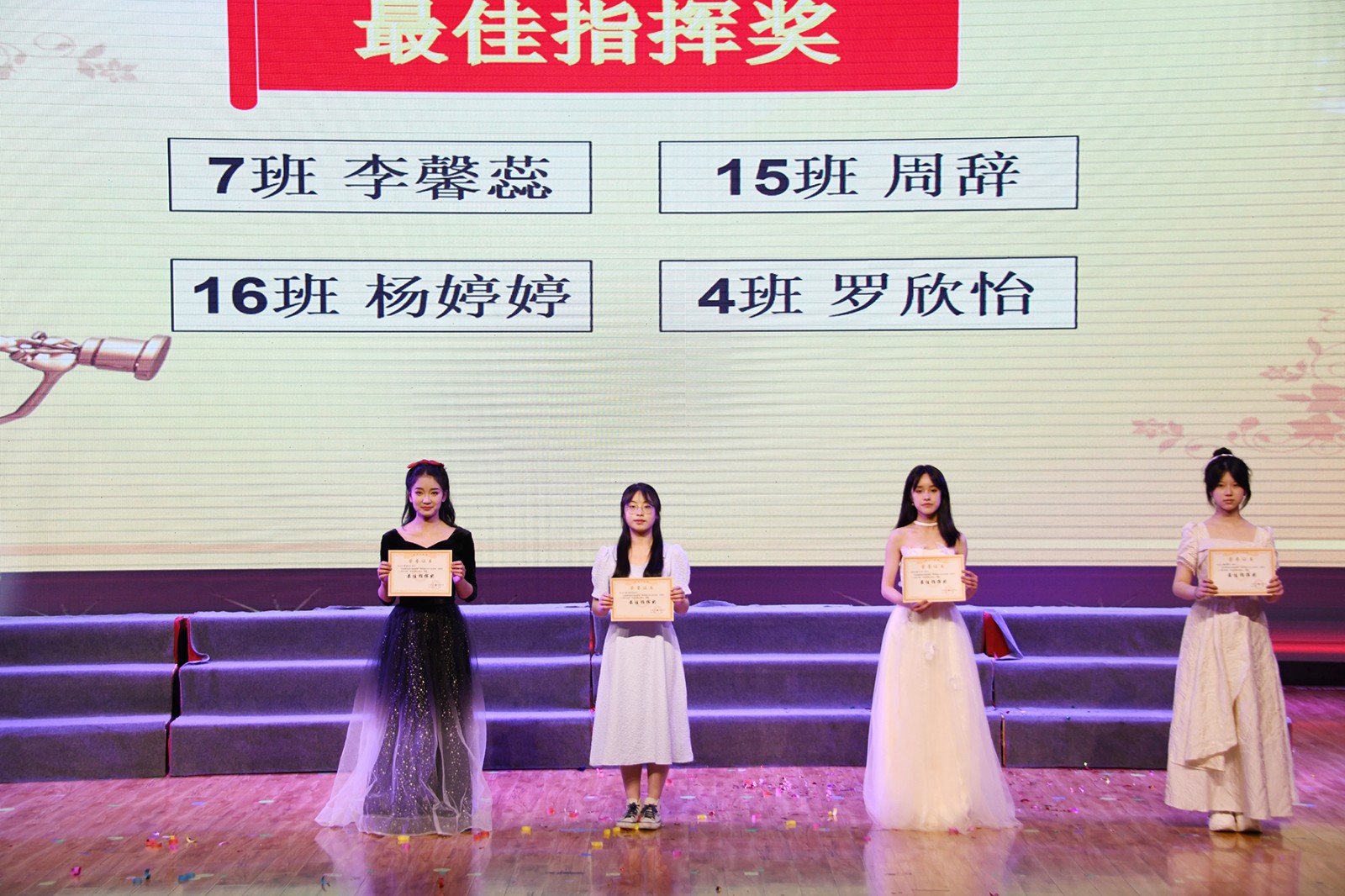 但看到其他班都准备了精美的服装、齐全的道具、五花八门的乐器,还有充满创意的情景表演,我们的信心被狠狠泼了一盆冷水,内心倍感压力。但在班主任华老师的鼓励下,我们将胆怯化作勇敢,振作精神迎难而上。石可破也,而不可夺坚;丹可破也,而不可夺赤。同学们昂首挺胸走上舞台,个个都拿出了最饱满的精气神,完成了有史以来最好的表演,台下掌声如潮便是最好的证明!最终,我们在没有服化道加持的情况下,取得了二等奖的好成绩,全班同学都欢呼雀跃!